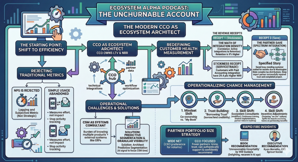 CCOs must evolve into ecosystem architects to drive retention and NRR. This episode explores how integrations, partners, and data signals create “un-churnable” customer accounts.